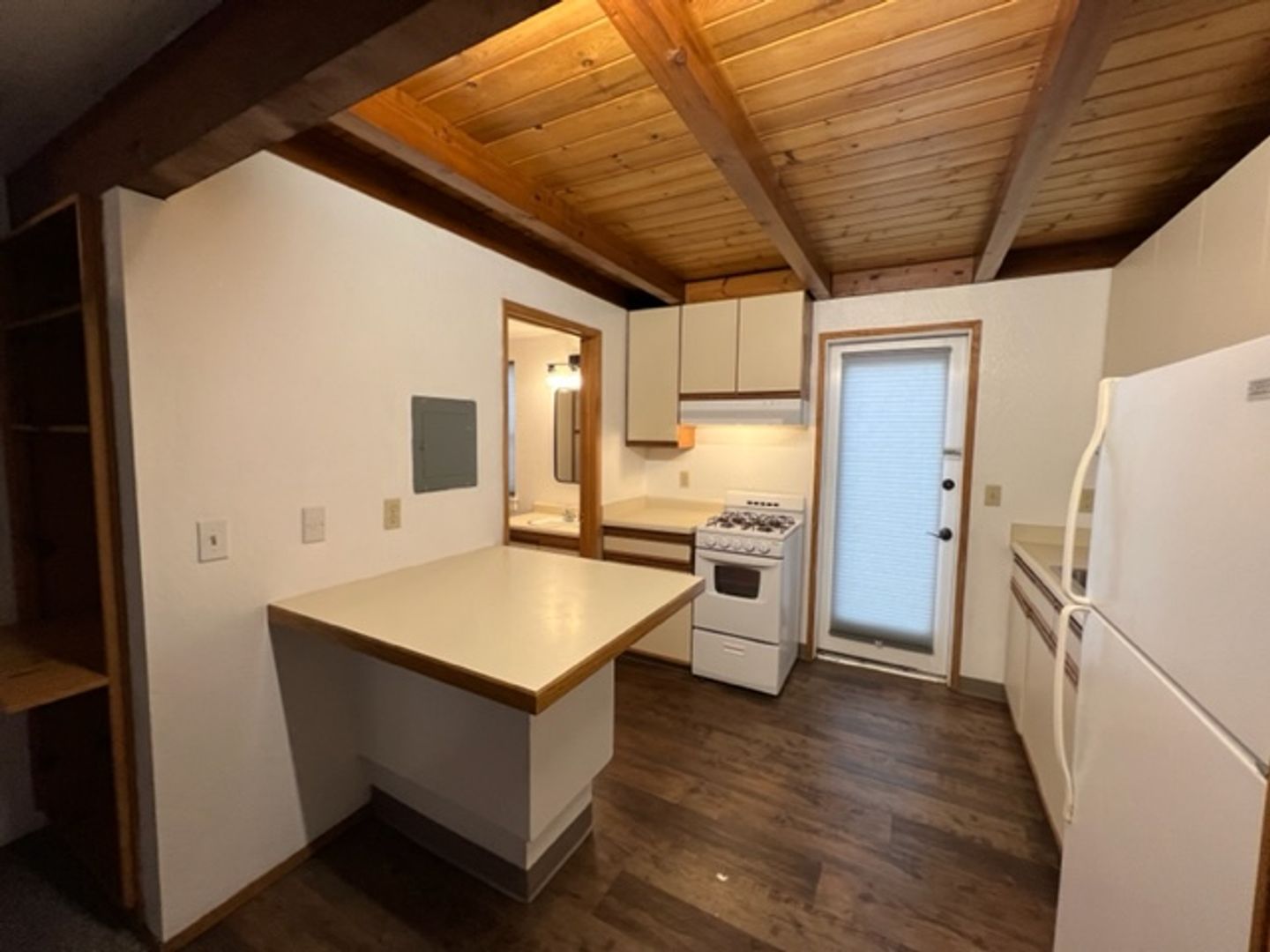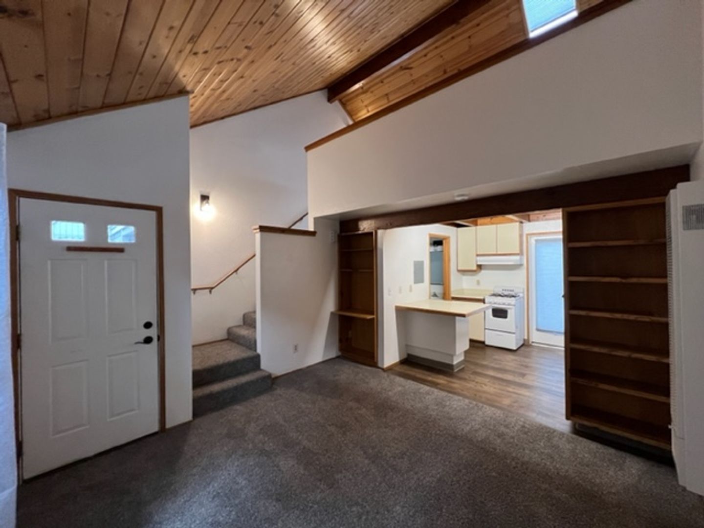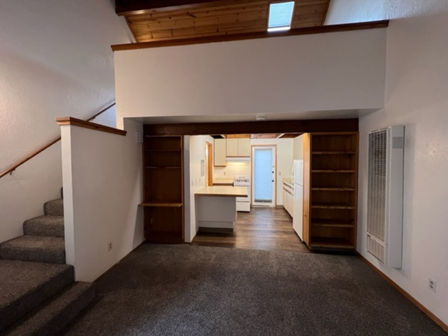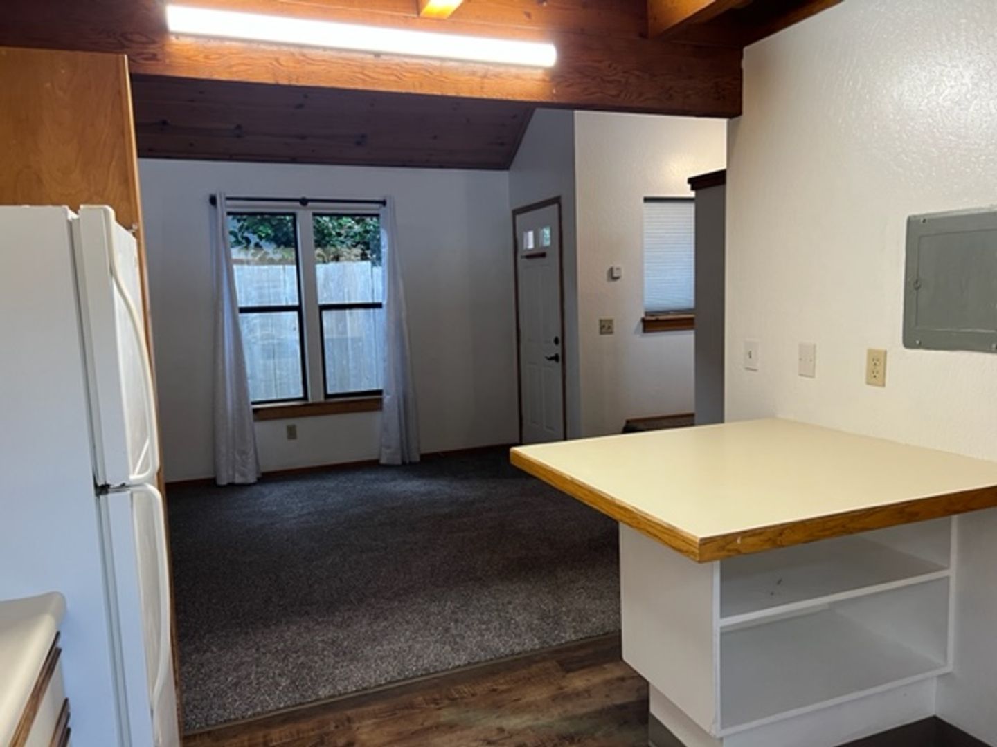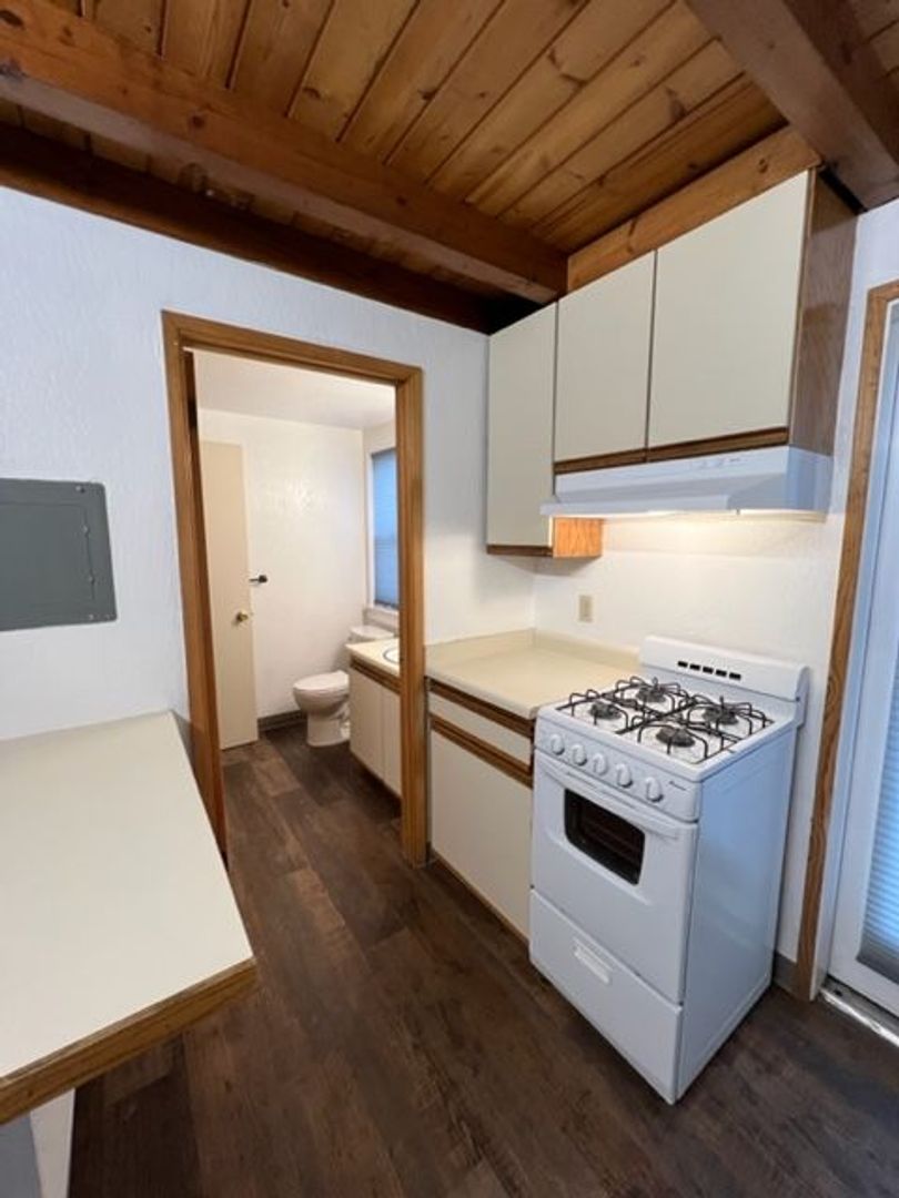NORTH TOWN Arcata! This loft 1 bedroom unit is just across the highway from Cal Poly Humboldt. . Hard to get closer to Cal Poly Humboldt without being on campus. Across the street from shops and restaurants. Cute, light-filled unit that has it's own private patio through a french door off the kitchen.