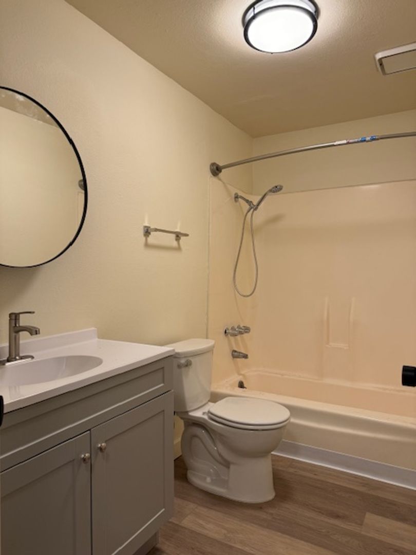 This 2 bed 1.5 bath upstairs unit is right across the 11th ST bridge from Cal Poly Humboldt! With nice new updates including all new cabinets and countertops, sinks, fresh paint and flooring, updated bathrooms and fresh finishes throughout. Spacious bedrooms with a bonus half bath and walk in closet in one of the bedrooms makes this a great space to share. Off-street parking included. Speed Wash directly next door. Two blocks to the Arcata Plaza and very close to local shops. A couple blocks from the Crabs baseball field. What a cool spot! Apply with us today!